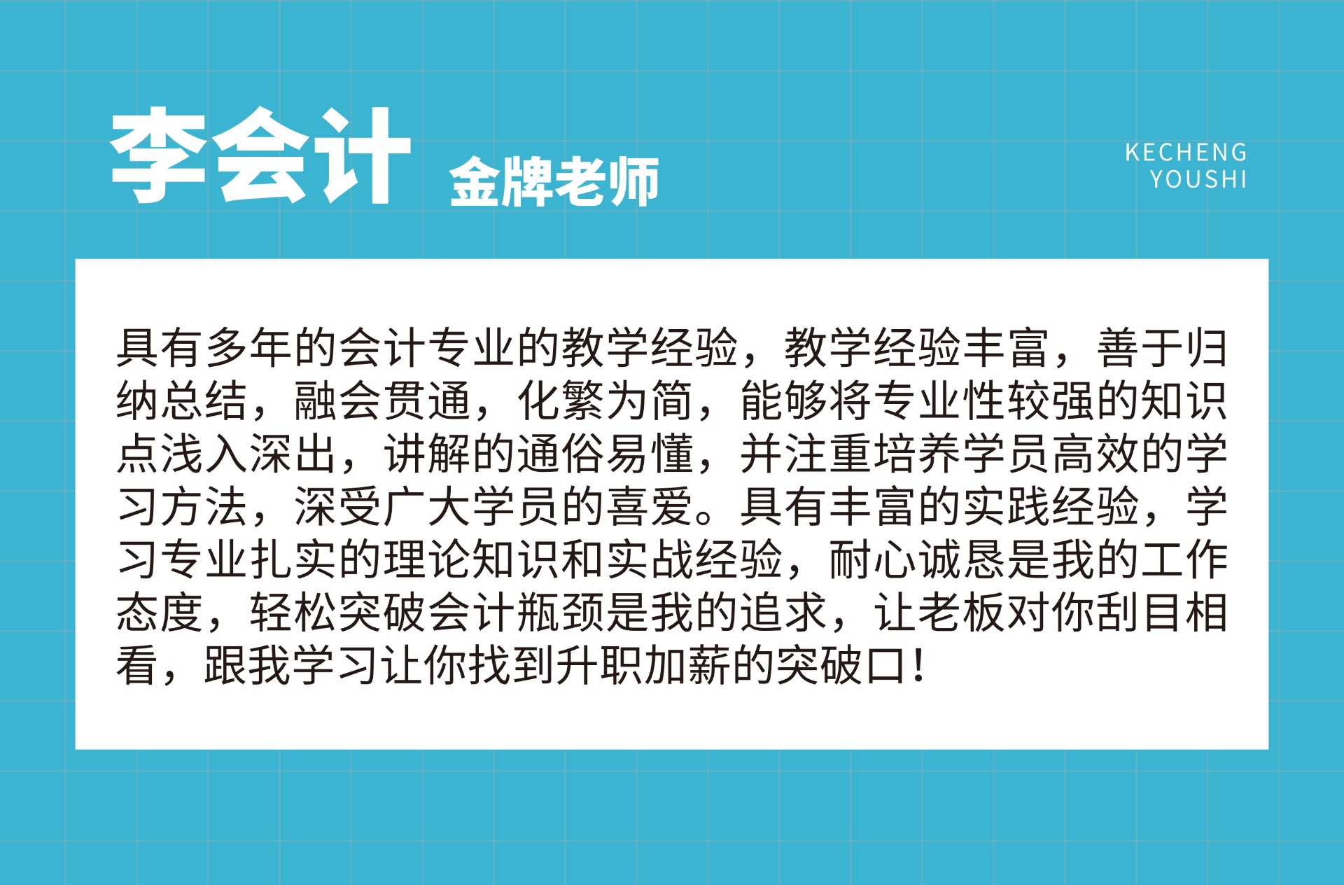 金牌讲师。具有多年的会计专业的教学经验,教学经验丰富,善于归纳总结,融会贯通,化繁为简,能够将专业性较强的知识点浅入深出,讲解的通俗易懂,并注重培养学员高效的学习方法,深受广大学员的喜爱。具有丰富的实践经验,学习专业扎实的理论知识和实战经验,耐心诚恳是我的工作态度,轻松突破会计瓶颈是我的追求,让老板对你刮目相看,跟我学习让你找到升职加薪的突破口!